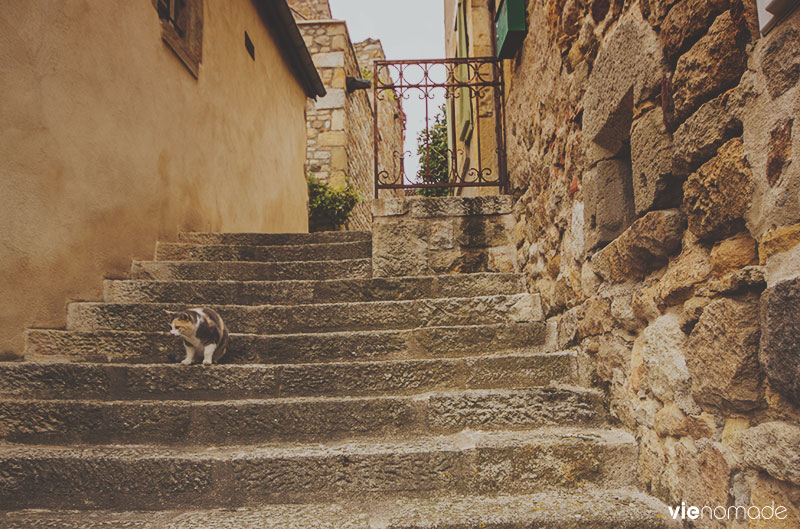 En fin d’après-midi, nous découvrons le village de Montpeyroux, couronné l’un des Plus Beaux Villages de France. Tranquillité absolue dans les ruelles, quelques badauds endimanchés et nous, dans nos attirails de randonneurs: on fait contraste au milieu de ces pierres bien rangées.